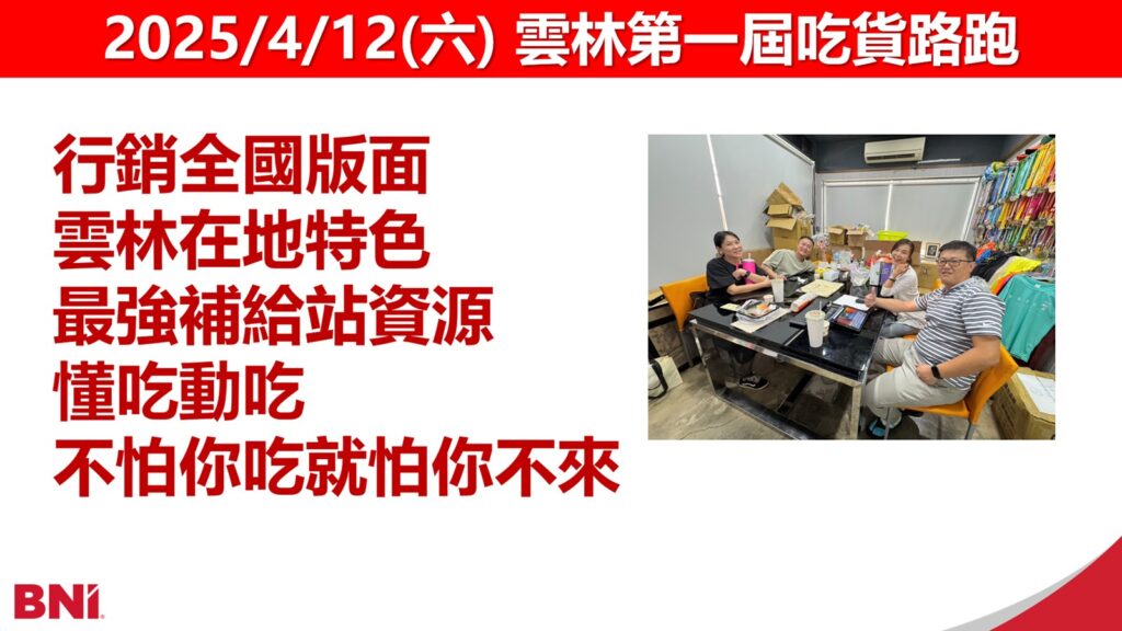 在這場全台首創的「突破BMI美食路跑」中,我們承諾不計艱辛地完成每一項籌備工作。